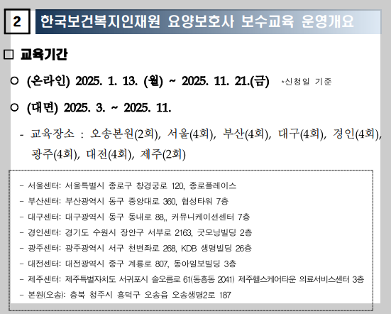 참고로 한국보건복지인재원의 경우 일부 거점 지역(서울, 부산, 대구, 광주 등)에서만 교육을 운영하지만,