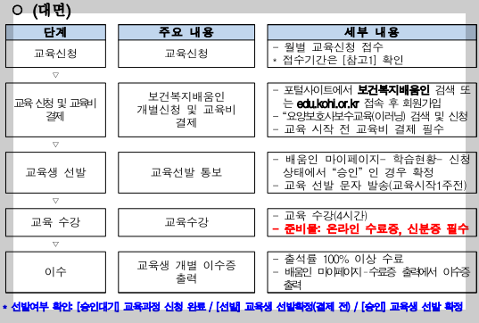 요양보호사 보수교육의 대면 과정은 크게 두 가지 방법으로 신청할 수 있습니다.