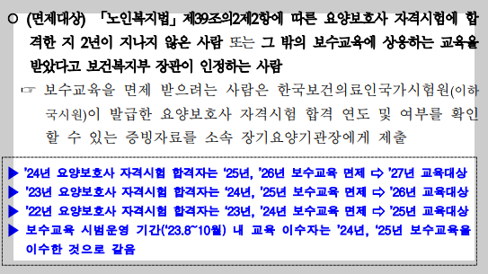- 2024년에 자격시험 합격 → 2025·2026년 보수교육 면제, 2027년부터 교육 대상