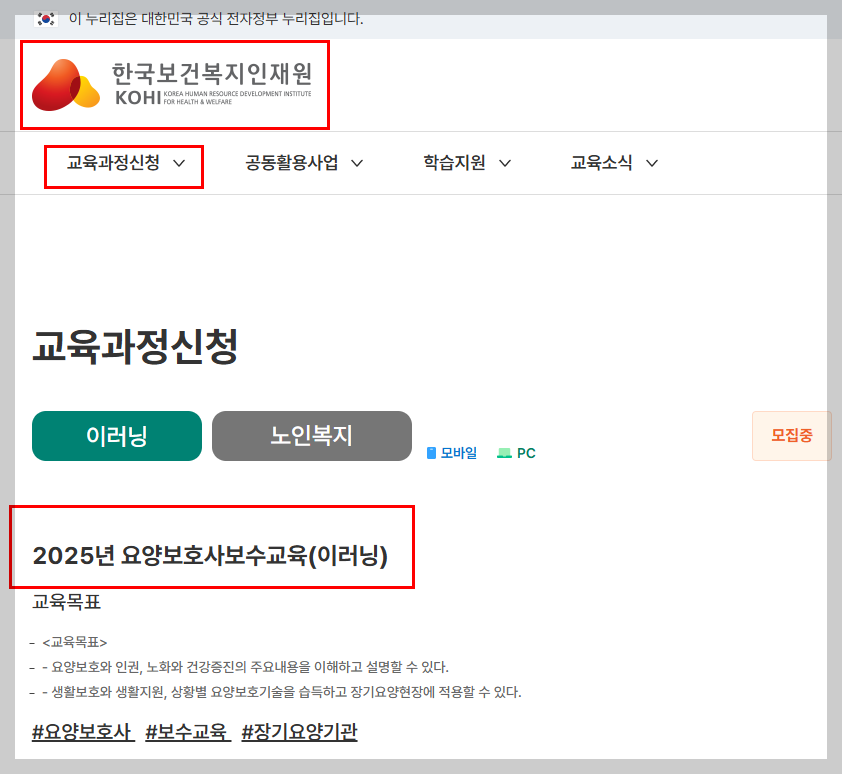 📌 공식 인정되는 이러닝 보수교육은 보건복지인재원에서 신청하는 것이 가장 확실합니다.