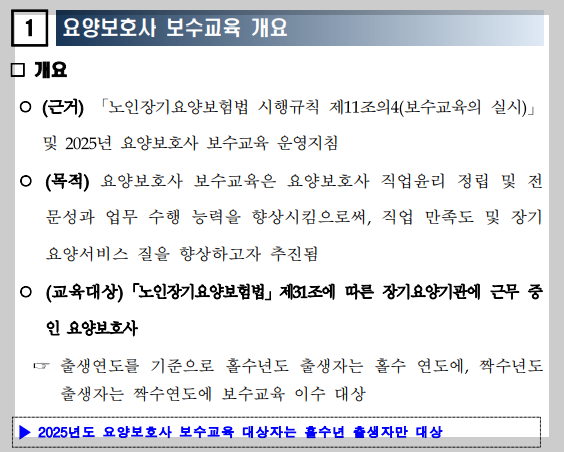 올해 요양보호사 보수교육 대상자는 ‘홀수년도 출생자’입니다.